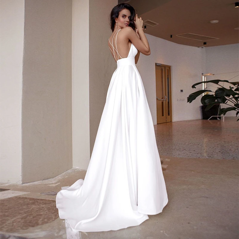 Женское свадебное платье на тонких бретельках, с открытой спиной и ...