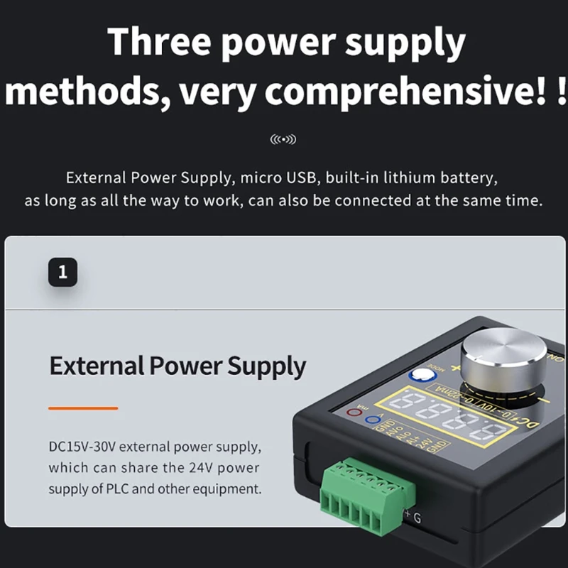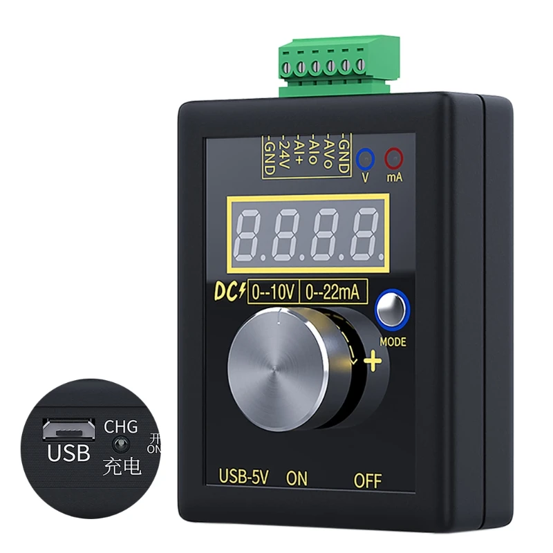 Перезаряжаемый аналоговый генератор сигналов 0-5 в 0-10 в 4-20 мА, карманный аккумулятор, регулируемый симулятор напряжения и тока калибрур