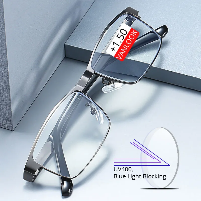Очки для чтения мужские с защитой от сисветильник, металлическая полуоправа, пресбиопические очки для компьютера с диоптриями, оптические очки 1,5 2,5