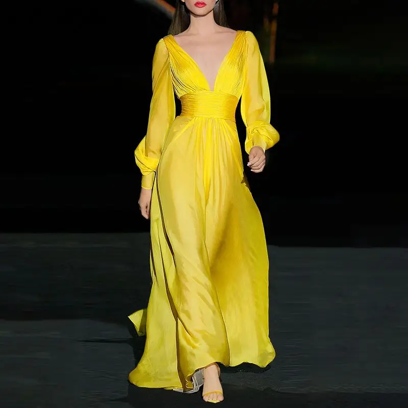 Платье женское длинное с глубоким V-образным вырезом, пикантное пля...