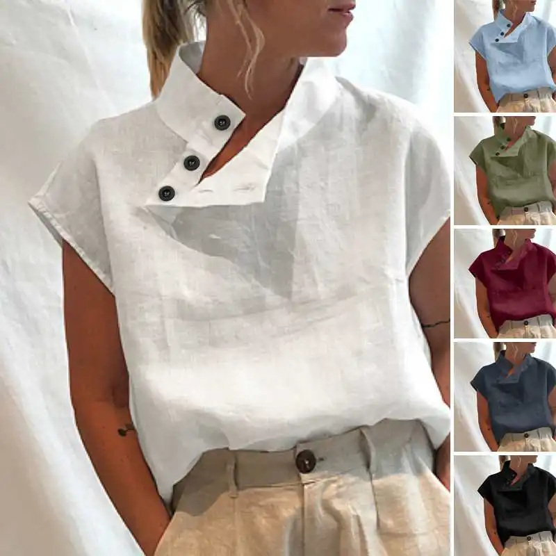 Блузка женская хлопковая, с коротким рукавом, на пуговицах, лето 2021