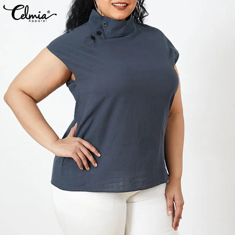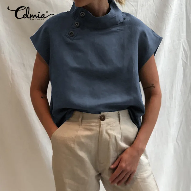Рубашка Celmia Женская хлопковая с коротким рукавом, повседневный льняной топ свободного покроя, винтажная туника, на лето