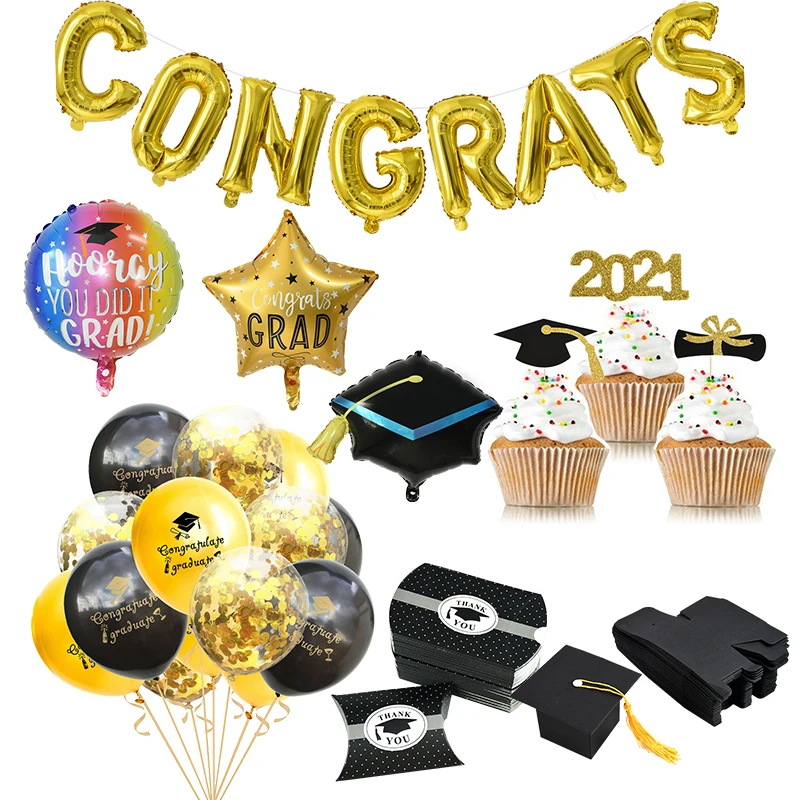 Поздравительная выпускная вечеринка, класс 2022, Топпер для кексов, Кепка Для холостяка, Подарочная коробка для конфет, поздравительные фольгированные воздушные шары, реквизит для фотобудки