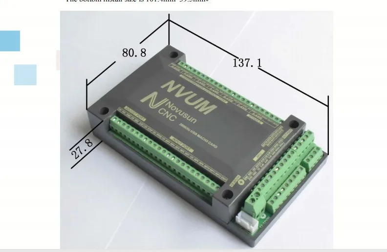 Контроллер движения NVUMV2.1 имеет герметичную конструкцию корпуса, есть 4 отверстия для установкиВнизу. Мы можем закрепить 4 отверстия диаметром 4 мм в шкафу и установить контроллер вШкаф. Внешний вид контроллера, как показано на рис. 1-1 и рис. 1-2:Общий размер изделия составляет 137,1 мм * 80,8 мм * 27,8 мм;Размер нижней части составляет 101,4 мм * 39,5 мм
