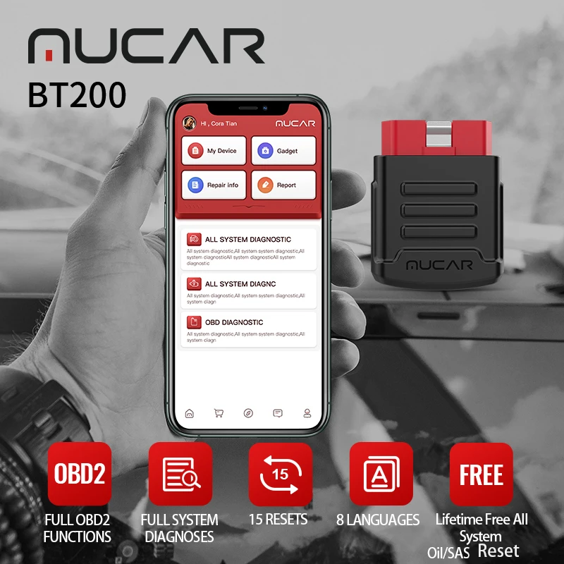 Диагностический сканер MUCAR BT200 OBD2, автомобильный прибор для считывания кодов, подходит для всех систем, с Bluetooth
