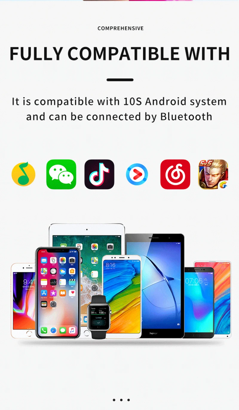 Он использует чип Bluetooth V5.1, Расстояние соединения 10 м, стабильную производительность, высокую передачу, низкое потребление и высокую совместимость.