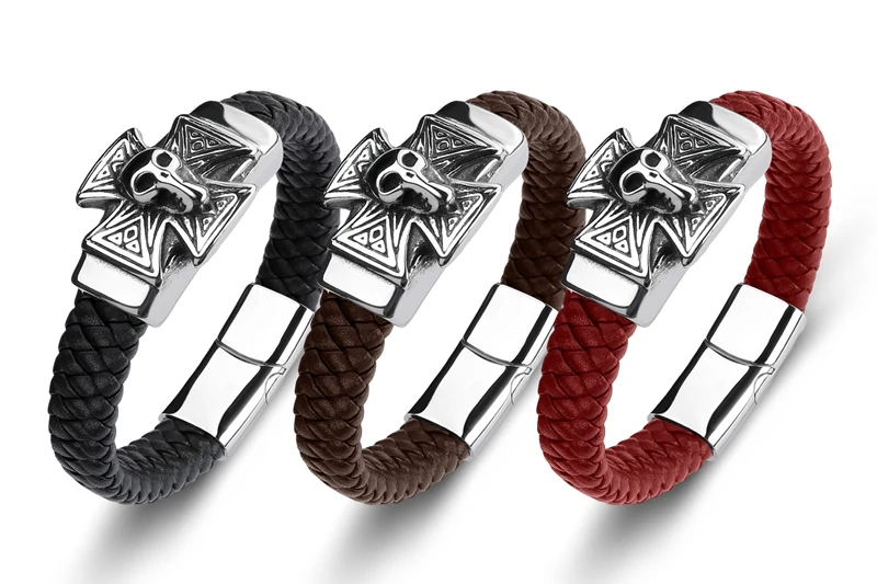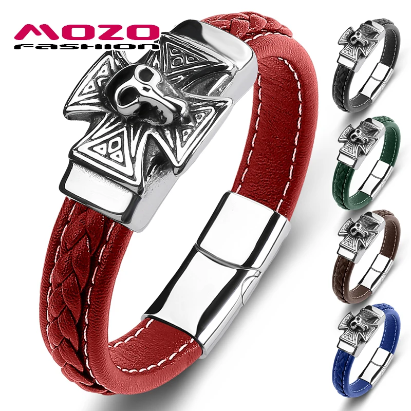 Модные очаровательные мужские браслеты MOZO с магнитным скелетом из нержавеющей стали плетеные модные ювелирные изделия из натуральной кожи подарки разные цвета 125
