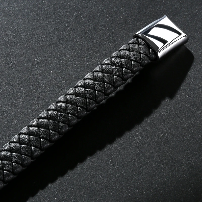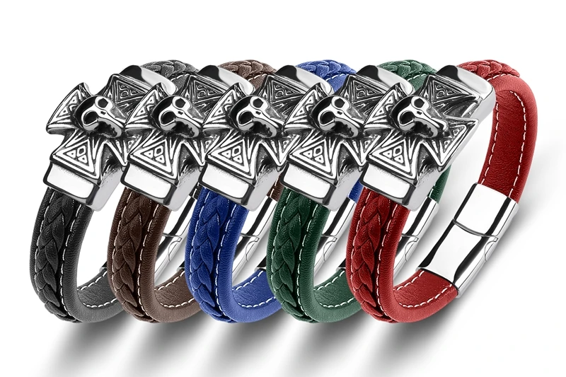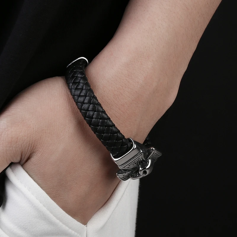 Браслет мужской из нержавеющей стали с двойной плетеной кожей, Ювел...