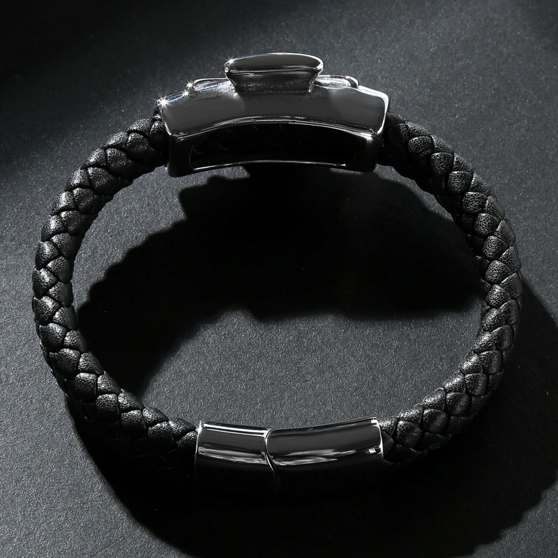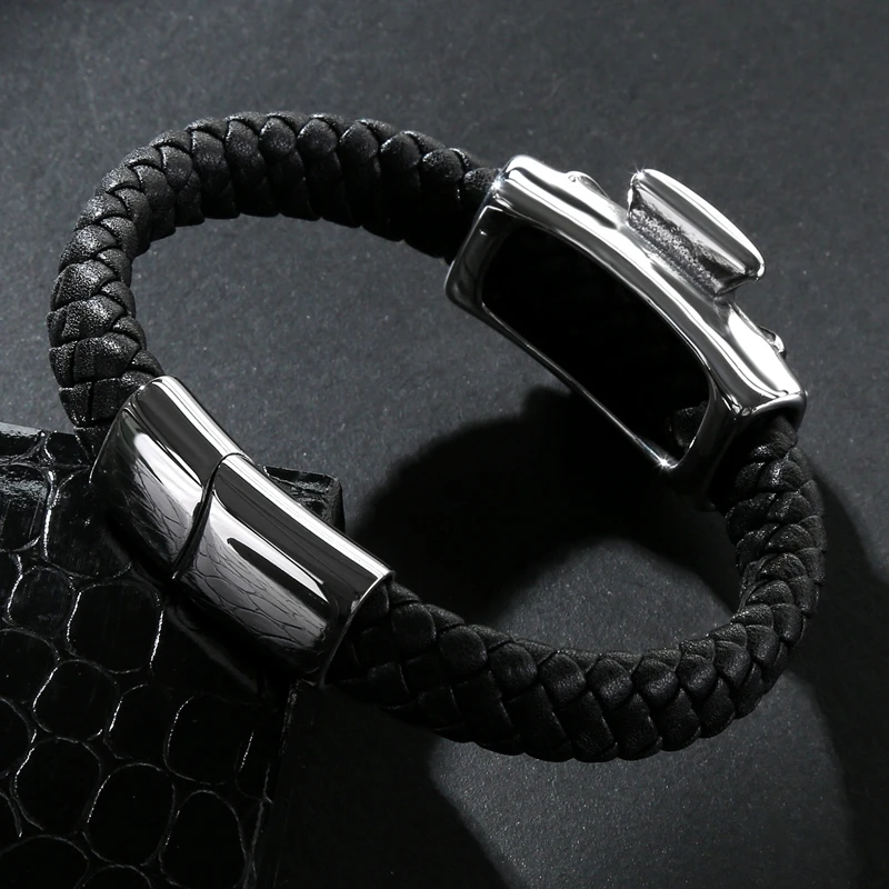 Модный плетеный кожаный мужской браслет, черный гладкий браслет из ...