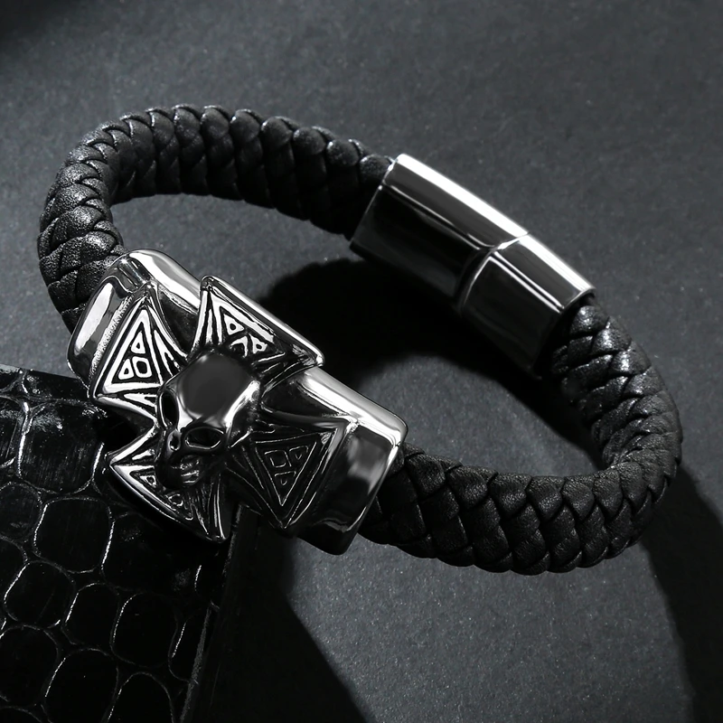 Браслет мужской кожаный плетеный, из нержавеющей стали, в стиле пан...