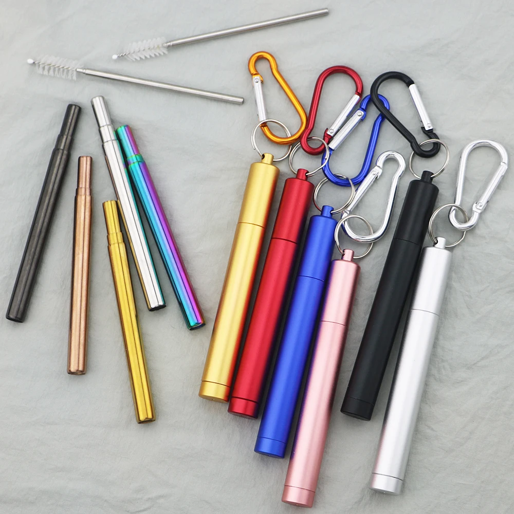 304 Нержавеющаясталь металлическая соломинка многоразовые телескопическая соломенная шляпа с щеточка для чистки складной Портативный питьевой соломы Набор для путешествий