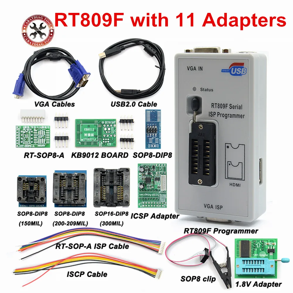 Новейший оригинальный серийный ISP программатор RT809F с 11 шт. адаптеров + тестовый зажим SOP8 + кабель EDID + ICSP bios Универсальный ISP программатор