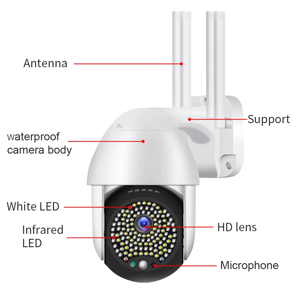 Поддержка 60 белых светодиодов + 60 ИК-светодиодов, ночное видение макс. 30-50 мПоддержка красной и синей сигнальной светильникПоддержка улучшенной способности проникновения двойной антенныПоддержка панорамирования 270 градусов/наклона 90 градусов и 4,0x цифрового зумаПоддержка интеллектуального автоматического отслеживанияПоддержка до 8 предустановленных позицийПоддержка беспроводного (Wi-Fi) и проводного двух режимовПоддержка двустороннего аудио разговора в режиме реального времениПоддержка функции обнаружения движения и сигнала тревогиПоддержка сетевых протоколов, таких как RTSP/DHCPС ситемой удаленной поддержки просмотр через приложение YCC365 на смартфонеПоддержка просмотра P2P через браузер, Совместимость с Chrome, Firefox, EdgeПоддержка TF-карты до 128 ГБ и бесплатной облачной записи в течение одного месяца.1 порт питания, 1 интерфейс Ethernet RJ45, 10/100M самоприспосабливающийся;