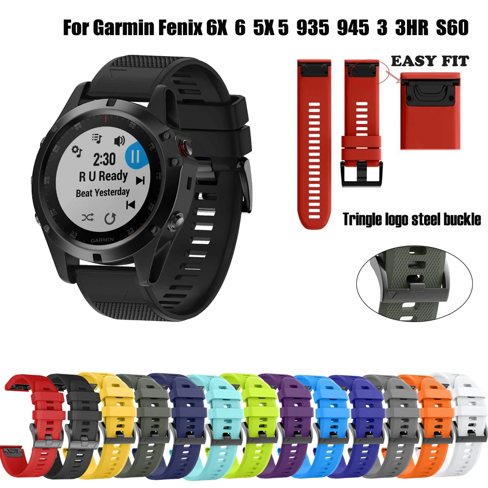 26 22 мм силиконовый быстросъемный ремешок для часов для Garmin Fenix 6X 6 Pro Watch Easyfit наручный ремешок для Fenix 5 5X Plus Watch