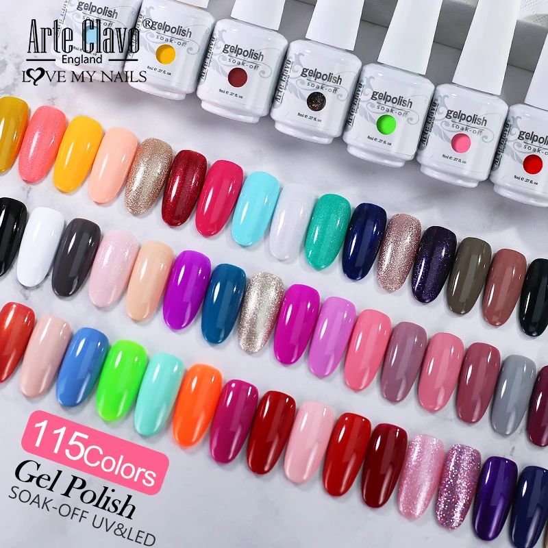 E Clavo искусства ногтей Лаки Топ основа для ногтей УФ гель лак для ногтей светодиодный светильник 115 Цвета био-Гели Soak Off для ухода за ногтями Маникюрный! Полупостоянная 8 мл "сделай сам"