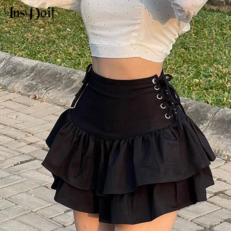Юбка женская плиссированная на шнуровке, с высокой талией, в готическом стиле