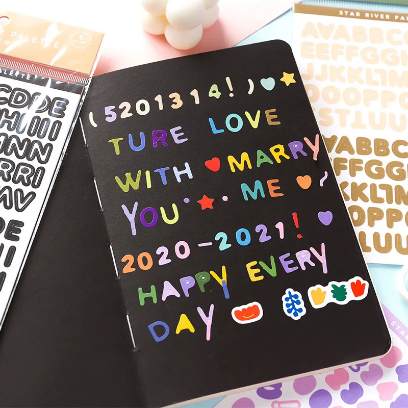 6 листовкомплект номер цифровой наклейки планировщик Тетрадь журнала милые самоклеющиеся наклейки с буквой Скрапбукинг Декор