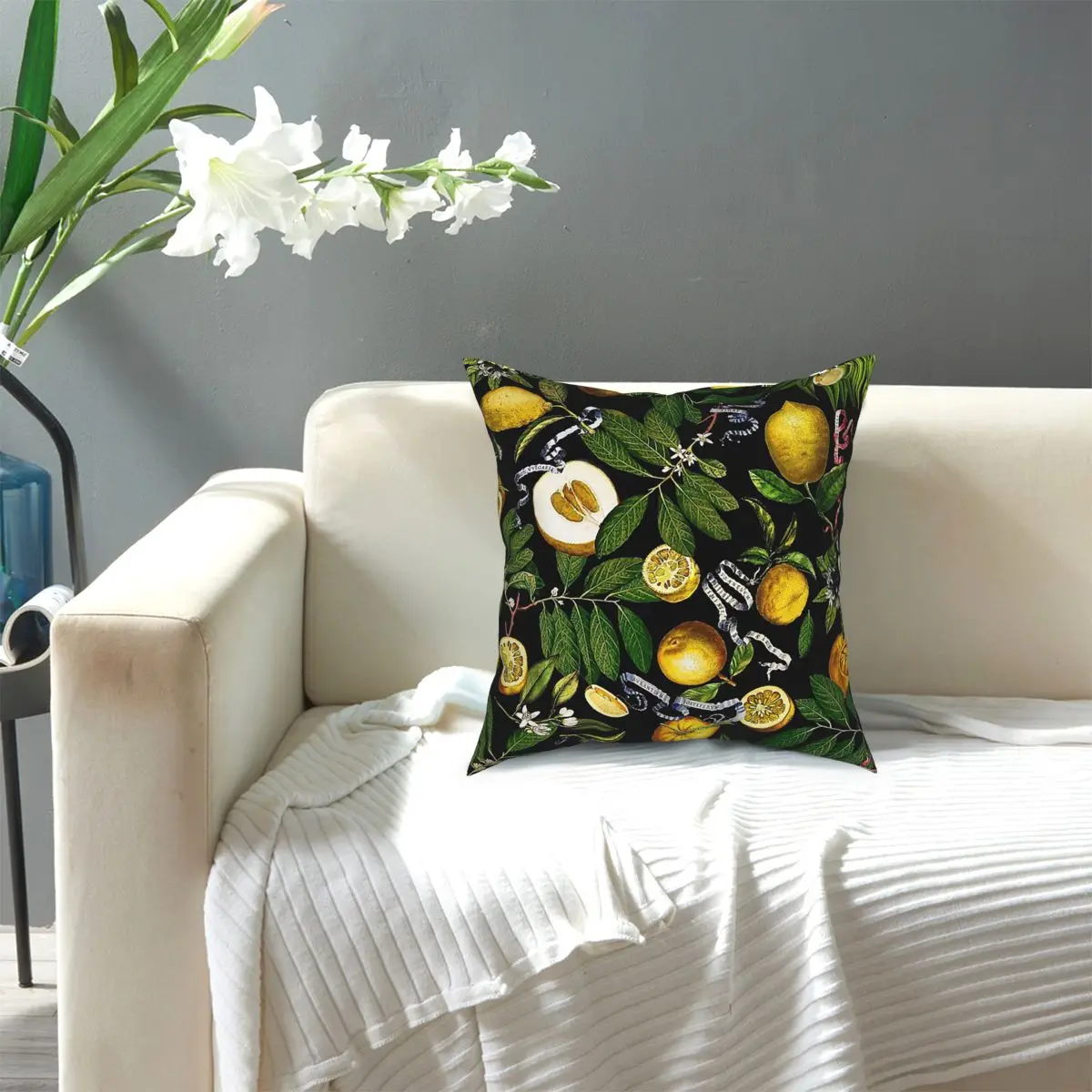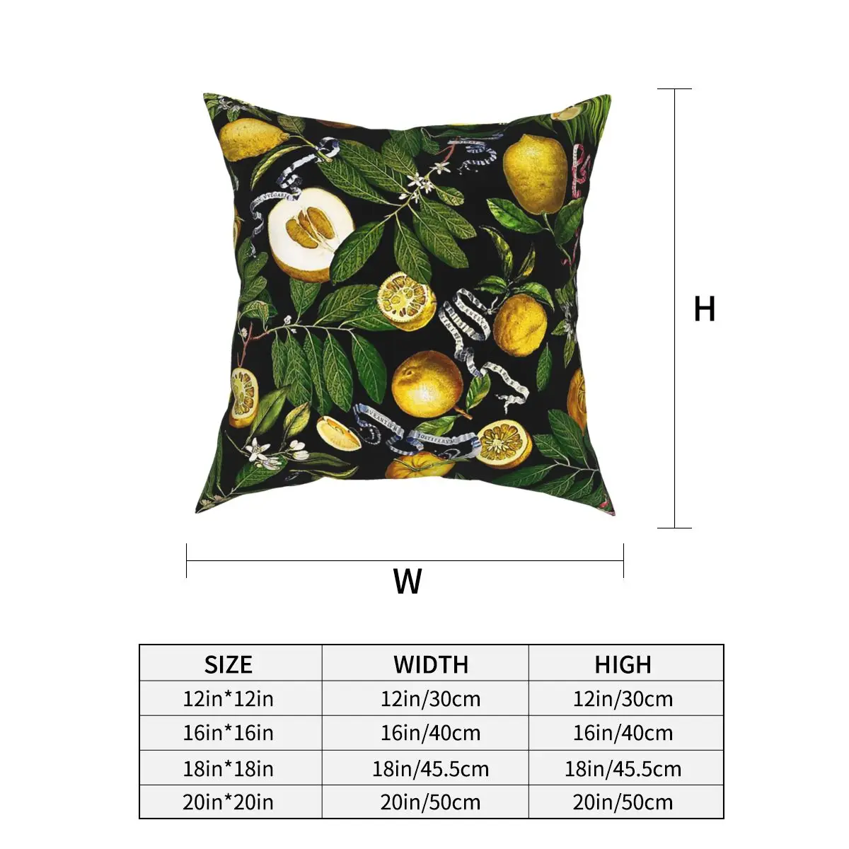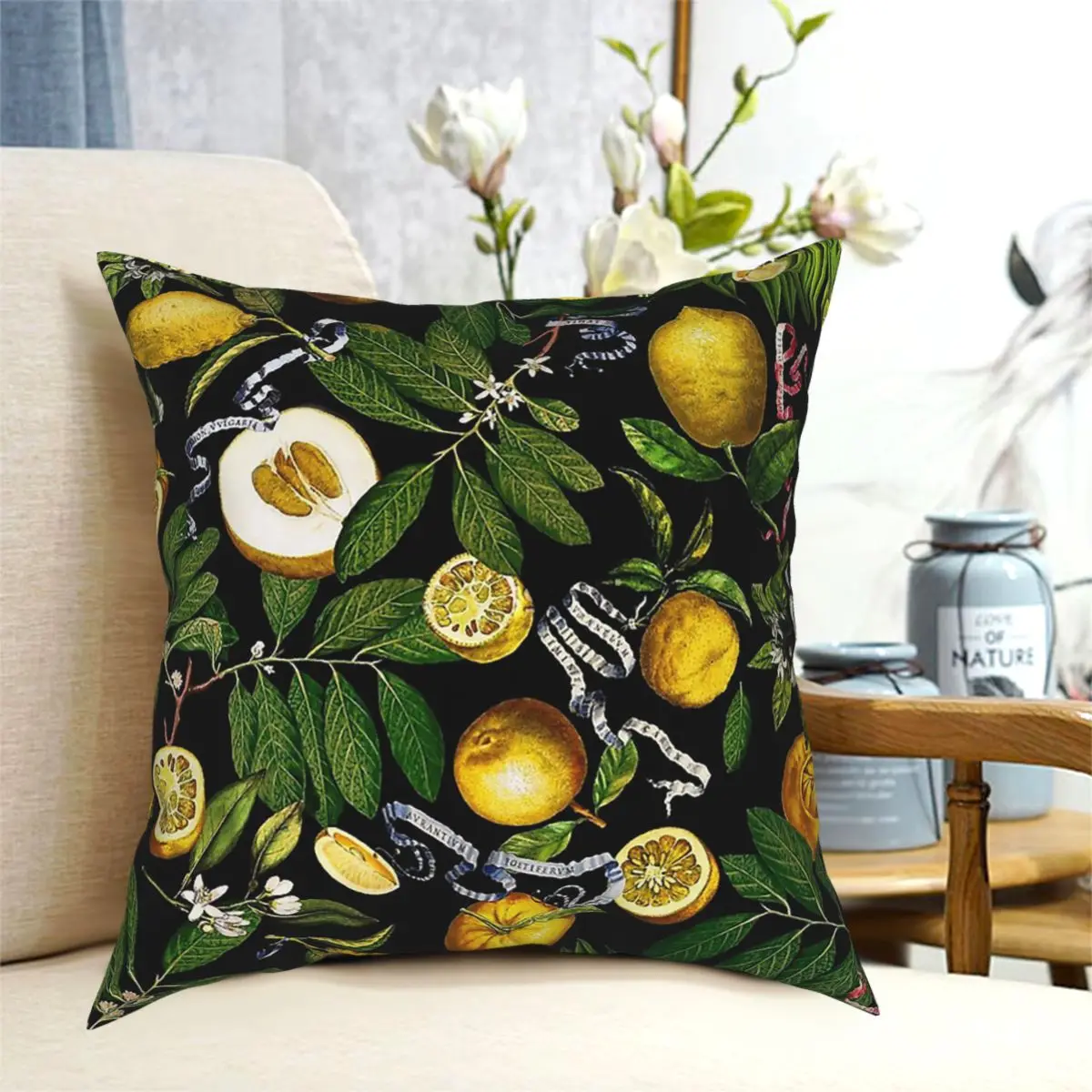 Черная декоративная наволочка на подушку с изображением лимонного дерева