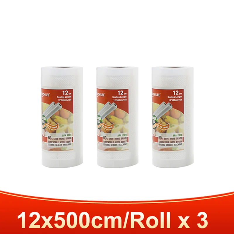 Вакуумные пакеты TINTON LIFE для вакуумного упаковщика, 3 рулона, 12*500 см
