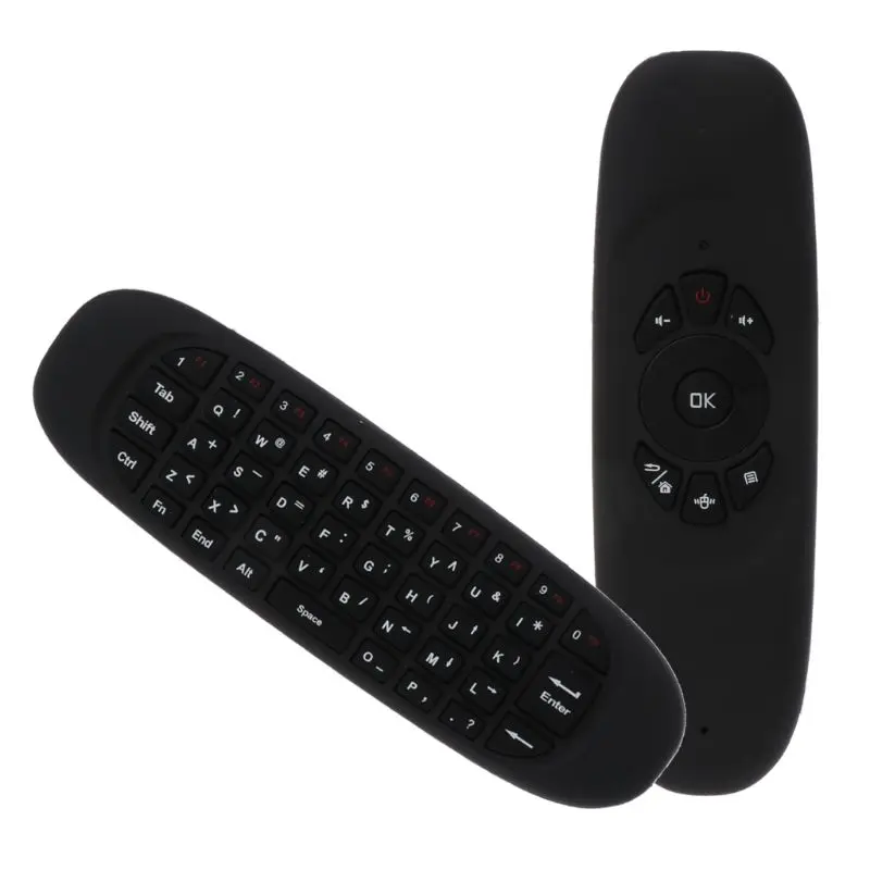 Пульт дистанционного управления с русской клавиатурой C120 Fly Air Mouse 2,4 ГГцOOTDTYПримечание: у нас есть 4 варианта на выбор: английский, русский, испанский, арабский(На английском языке обновлена Матовая Версия)1. ОписаниеЭто изделие представляет собой пульт дистанционного управления с многофункциональной поддержкой Air Mouse, клавиатуры, мультимедийного управления и соматических игр.2. Особенности товара2,4G беспроводной, USB приемник, подключи и работай;360 градусов ненаправленный пульт;Воздушная мышь, алгоритм Anti-shake;Беспроводная клавиатура;Соматические игры;Совместимые ОС: Windows,Mac OS,Android,Linux;Устройства: ПК, Smart TV, приставка, сетевой медиаплеер, планшет, игровой плеер и т. Д.Без микрофона.3. СпецификацияС использованием расширенного 6-осевого раствора 3-осевого G-датчика + 3-осевого датчика гироскопа.Радиочастотная Беспроводная связь 2,4 ГГц.Рабочее расстояние: 10 мДиапазон воспроизводимых частот: 2400 ~ 2483 ГГц.Рабочий ток <>< 20 = "">Ток в спящем режиме <>< 20 = "">Перезаряжаемый литиевый аккумулятор.Индикация: 1 светодиодный индикаторРазмер изделия 151x45x14 мм (Длина x Ширина x высота)Размер приемника: 18,58x14,59x6,7 мм (Длина x Ширина x высота) мини-приемникТип USB: USB2.0Система: совместима с Windows, OS, Linux, Android.4. СопряжениеПредупреждение: эта операция может отключить исходное парное соединение, пожалуйста, Действуйте с предостережением.1) Подключите приемник USB-ключа. Держите расстояние между пультом дистанционного управления и ПК в пределах 1 м.2) Нажмите клавиши «OK(Enter)» и «Return» в течение 2 секунд, когда на экране появится курсор, сопряжение успешно выполнено.5. ГибернацияПульт дистанционного управления превратится в режим гибернации, когда он остается неподвижным в течение 20 секунд. Нажмите любую клавишу, чтобы разбудить пульт дистанционного управления.6. Примечание1) аккумулятор:Держите батарею с достаточной мощностью. Когда напряжение низкое, это повлияет на стабильность курсора мыши. Мы предлагаем зарядку в течение одного часа непрерывно.2) Рабочее расстояние:На это фактическое рабочее расстояние пульта будет влиять электромагнитное поле. Убедитесь, что приемник не покрыт металлическими предметами.3) Сопряжение: сопряжение завершено до того, как пульт дистанционного управления покинет завод. Эта функция может использоваться только дистрибьюторами.4) Пакет соматических игр, пожалуйста, свяжитесь с местным дистрибьютором или загрузите с нашего сайта 7. Метод работы:Данная поддержка 2,4G беспроводной связи, поэтому вам нужно подключить USB-адаптер air mouse, чтобы получить сигнал 10m. Можно использовать все клавиши клавиатуры. Внимание:1. В качестве универсального контроллера некоторые функциональные клавиши могут не работать для вашей системы, если она изготовлена по индивидуальному заказу. (Поддерживает Smart TV, IP TV, сетевую приставку, мини-ПК, TV Box, HTPC и PC TV. Он прост в использовании, просто подключи и работай)2. Телевизор должен быть настроен на Сетевое телевидение и должен быть вставлен в USB-адаптер для использования в чехол системы.Посылка входит:1 Воздушная мышь1 x USB-приемник1 x USB-кабель1 x Руководство пользователя
