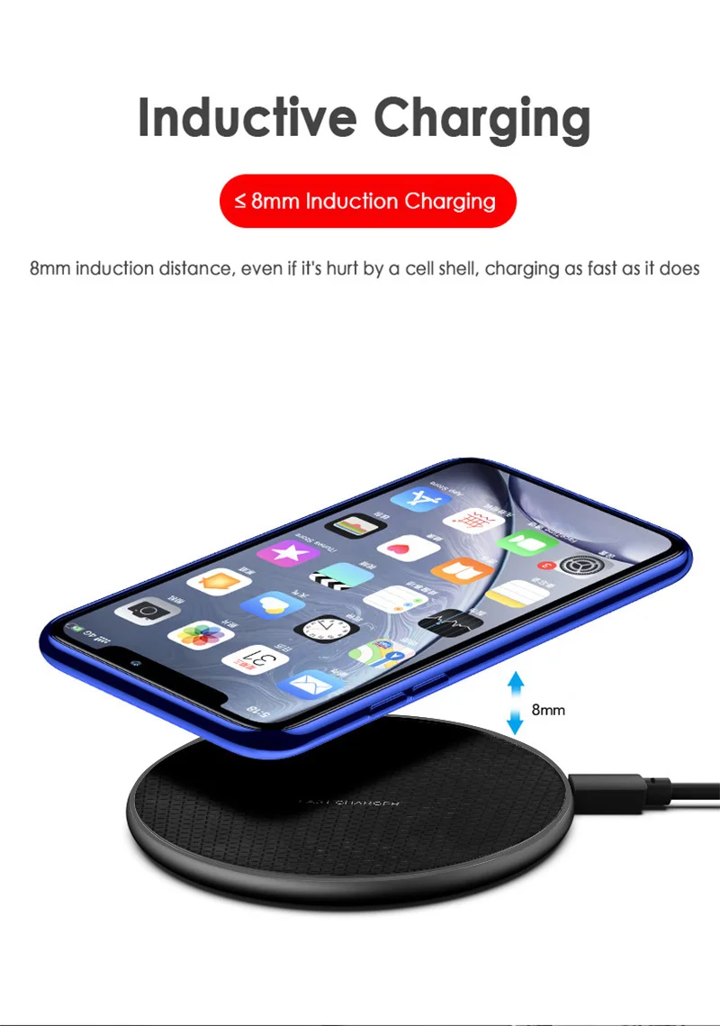 Быстрая Беспроводная зарядка: режим быстрой зарядки 10 Вт совместим только с Samsung Galaxy S9/S9 Plus/S8/S8 Plus/Note 9/Note 8/Note 5/S6 Edge/S7/S7 Edge и другие продукты серии Galaxy Note и Galaxy S, 7,5 Вт Быстрая зарядка совместима с iPhone 11/11pro/11pro max/X/XS MAX/XR, iPhone8/8 plus (Другие устройства с поддержкой Qi будут заряжаться со стандартной скоростью беспроводной зарядки).