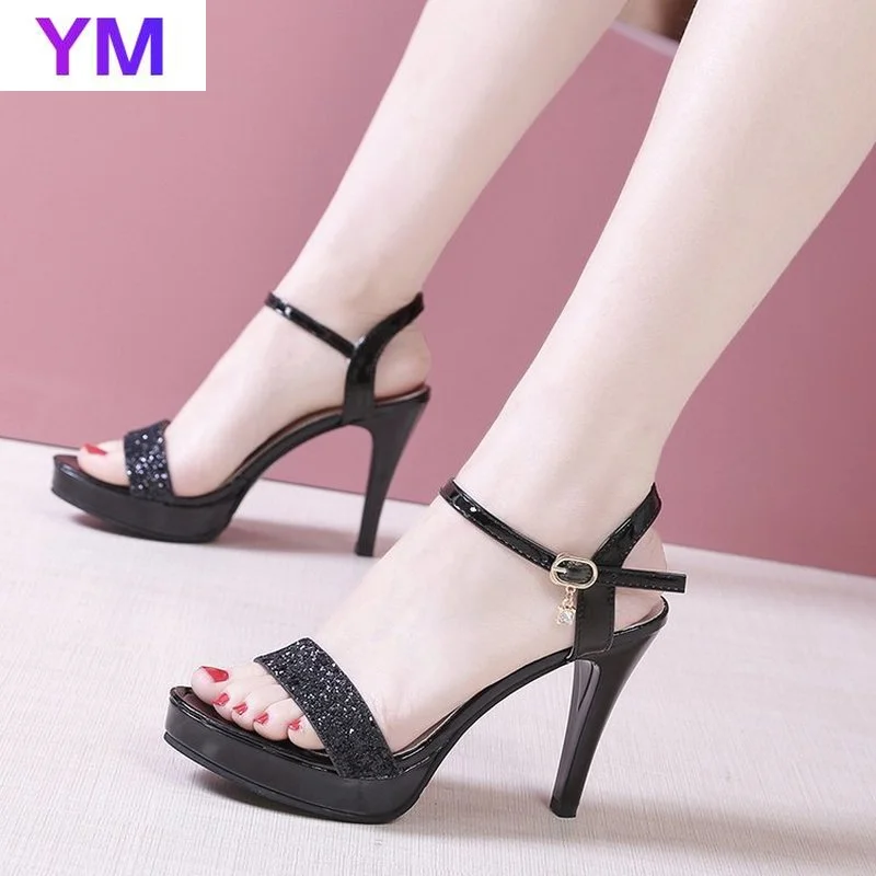 2020 женские босоножки; Бежевые пикантные сандалии с открытым носком; Модные женские сандалии-гладиаторы с ремешком и пряжкой; Повседневные сандалии на высоком каблуке