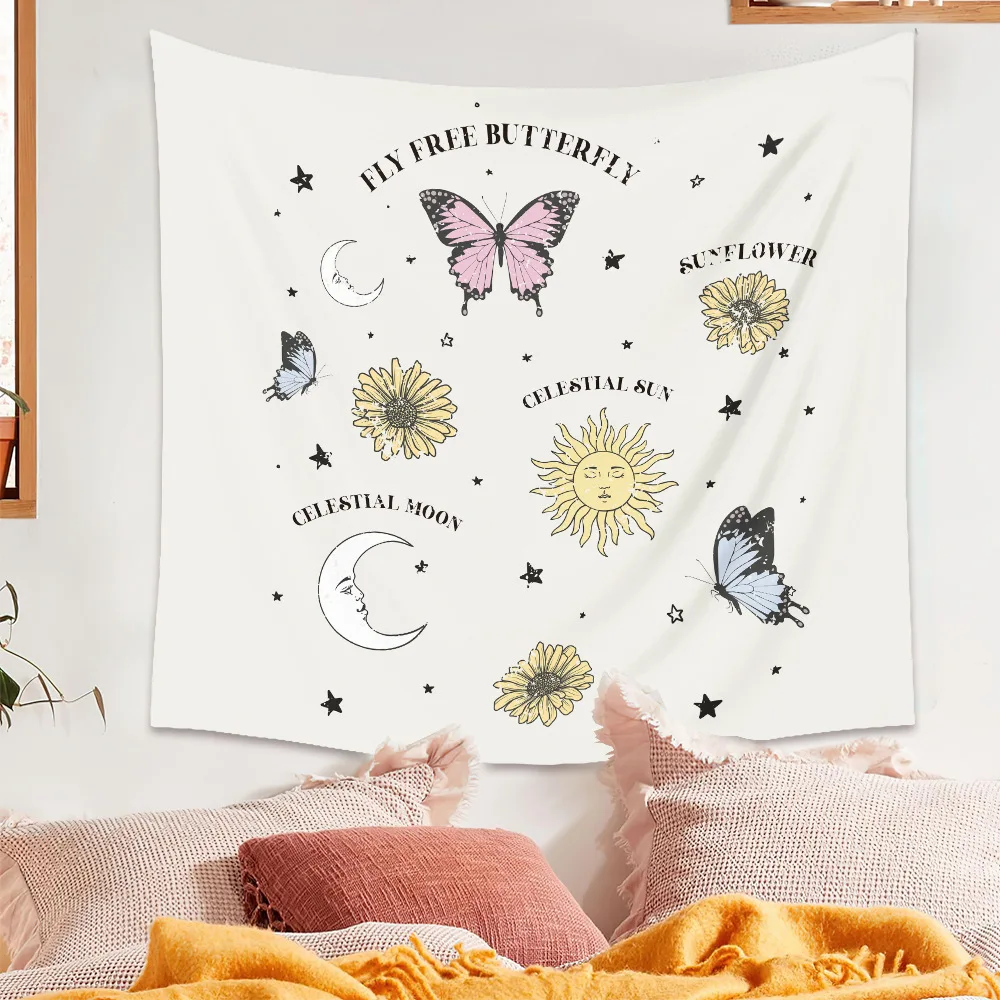 Гобелен с рисунком солнца, луны, бабочек