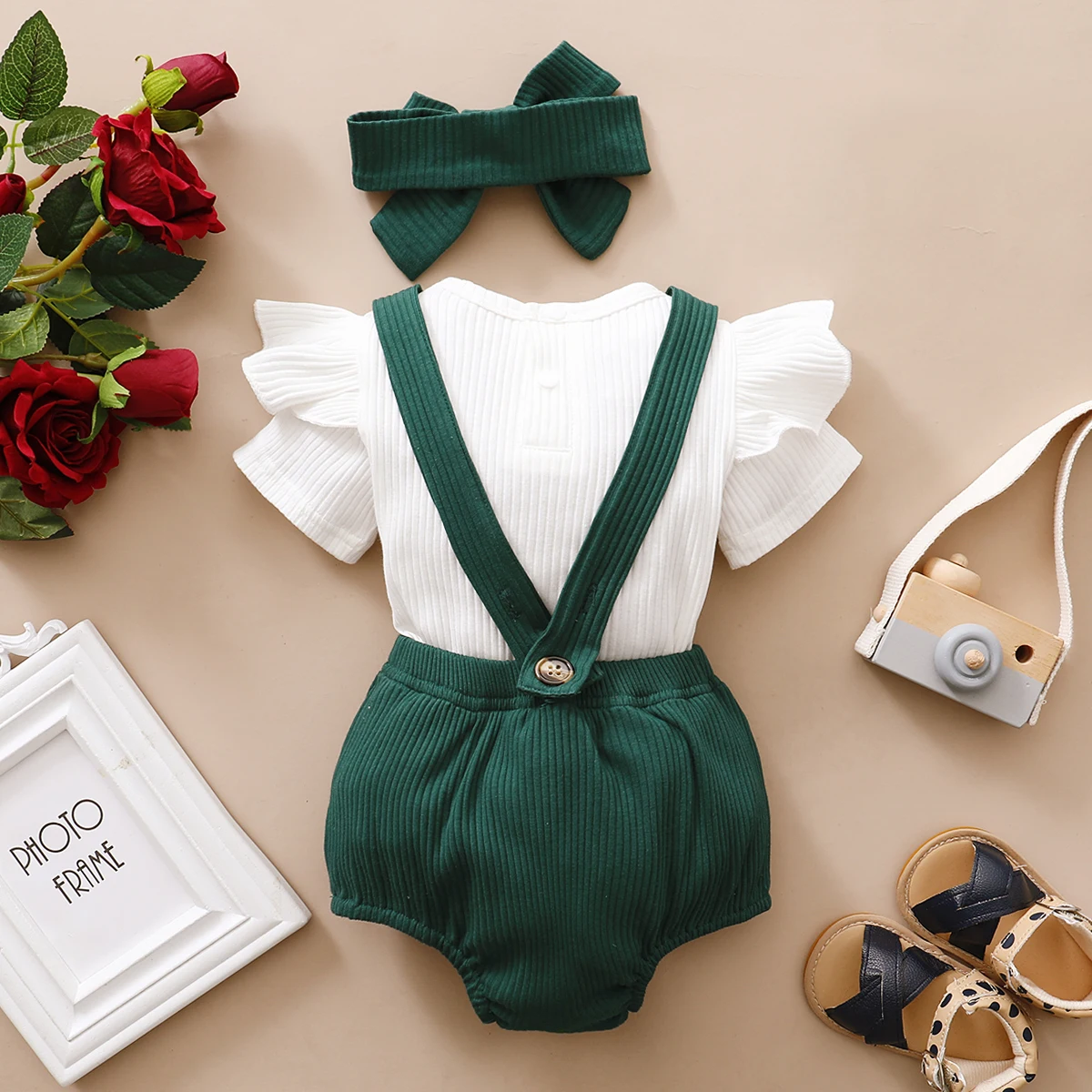 Летняя одежда для новорожденных девочек, детский белый топ принцессы с оборками + шорты на бретелях, наряд для малышей, Одежда для новорожденных