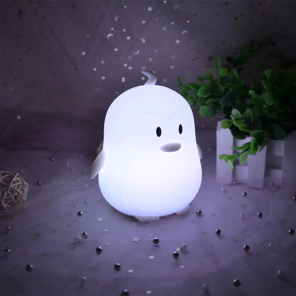 Силиконовый ночсветильник в виде пингвина с сенсорным датчиком, дистанционным управлением, таймером затемнения, перезаряжаемый светодиодный ночник RGB для детей, подарок ребенку