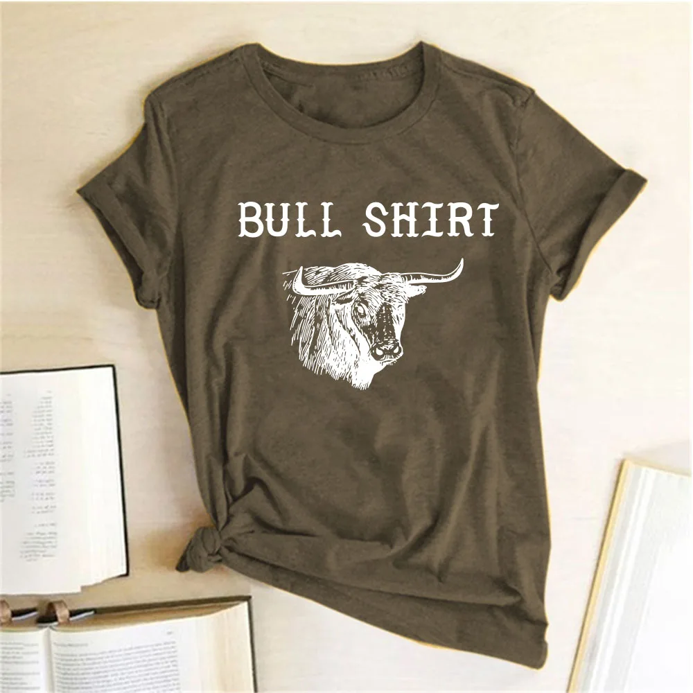 Новинка 2021, женская футболка с принтом Bull, свободная повседневная футболка с круглым вырезом, летняя Эстетическая одежда для женщин, Ropa Mujer