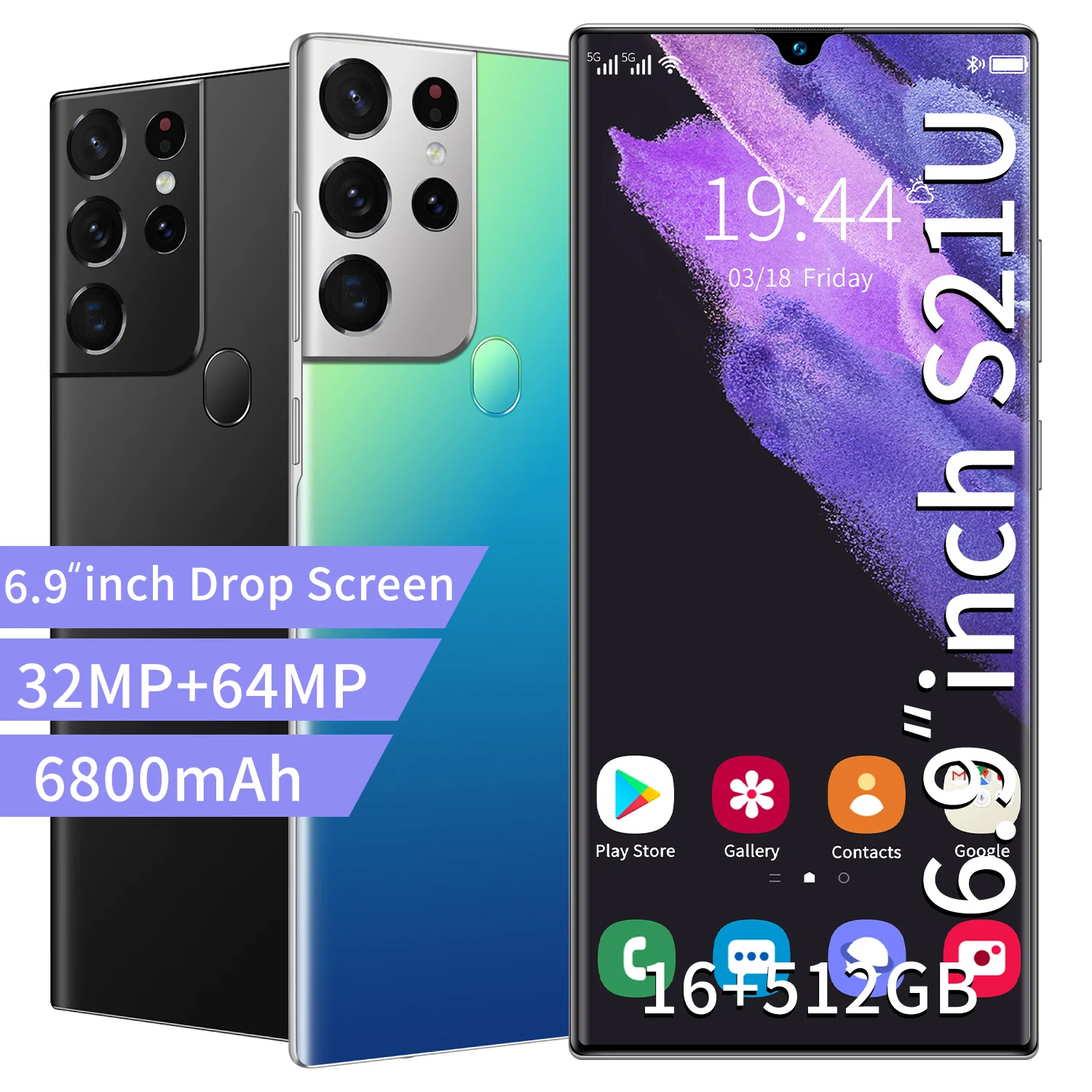 S21U Новейший Смартфон Android 11 16 Гб ОЗУ 512 Гб ПЗУ 6800 мАч десятиядерный процессор мобильный телефон 6,9 "Задняя камера 64 мп