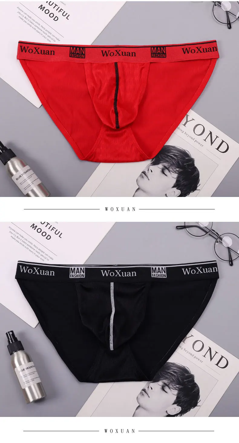 Мужское сексуальное нижнее белье, шелковые трусы, U-образные выпукл...