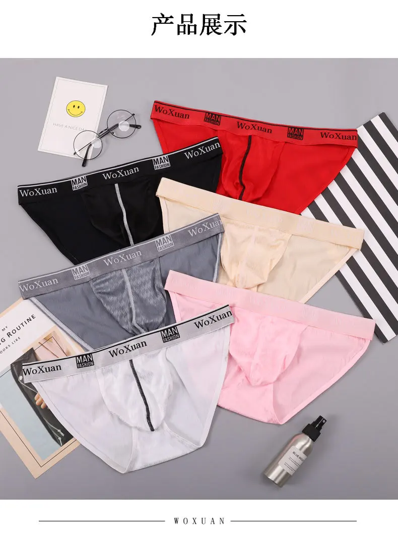 Мужские трусы, мягкое дышащее шелковое сексуальное нижнее белье, му...
