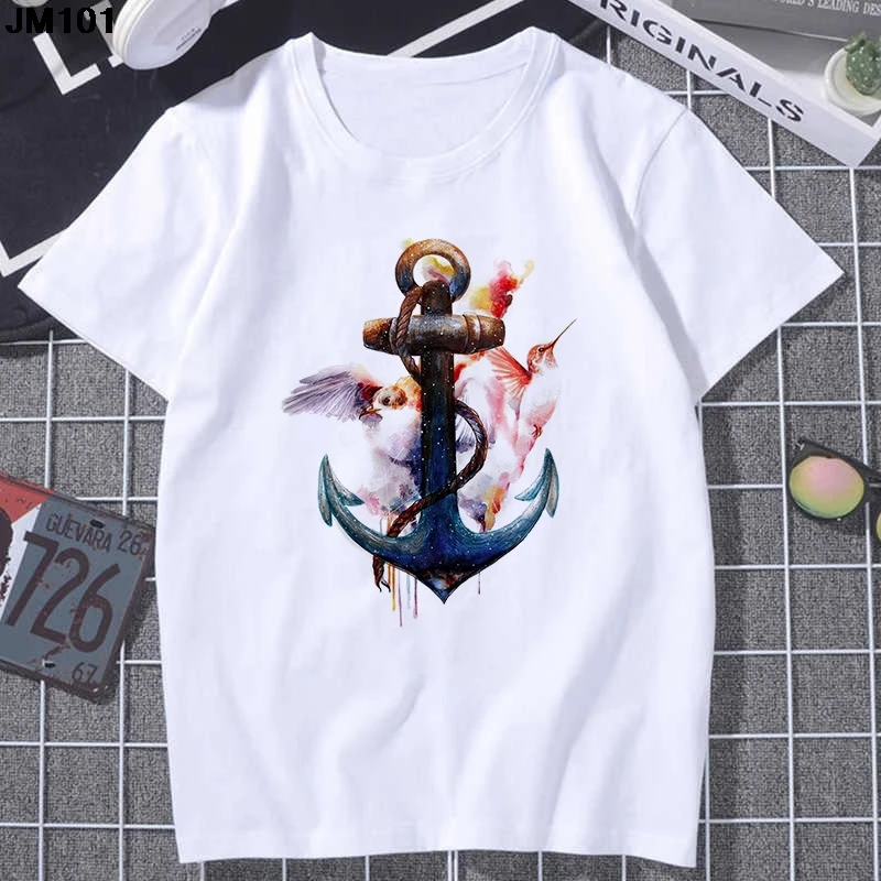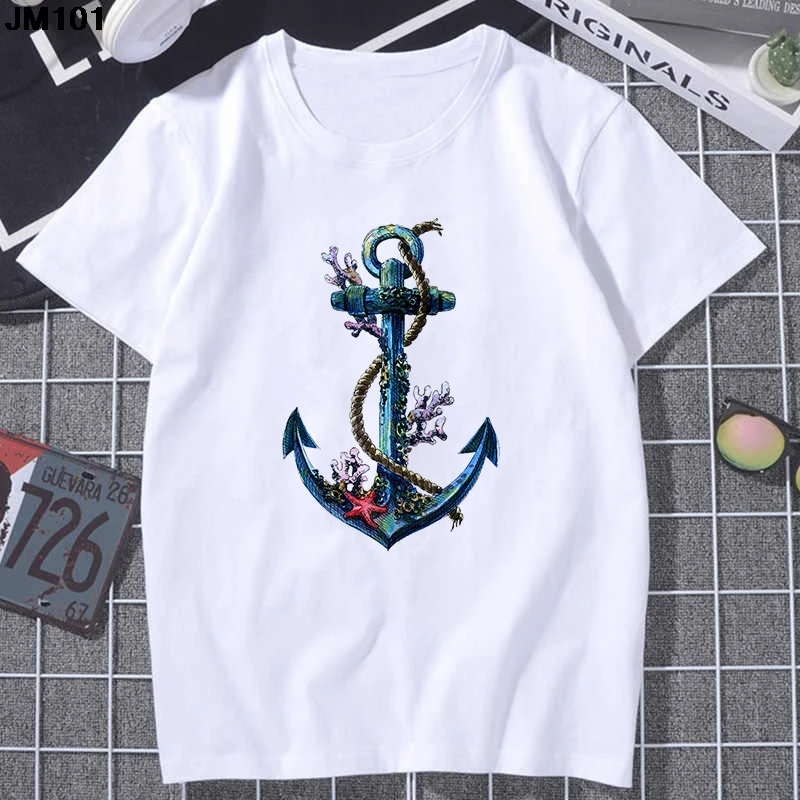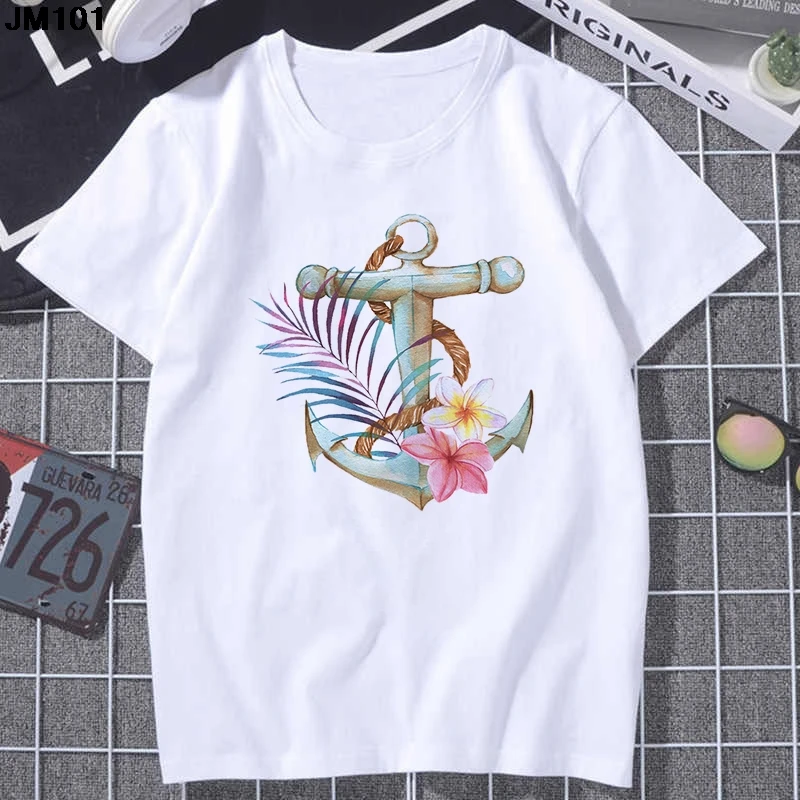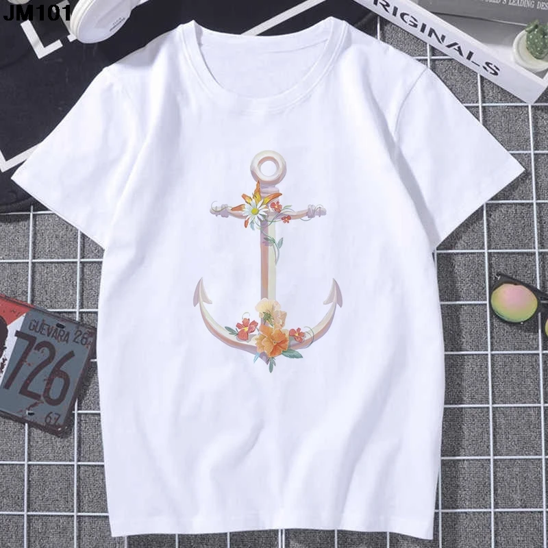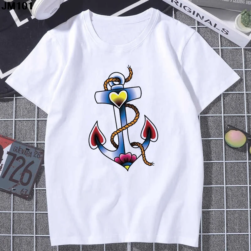 Футболка женская с принтом якоря, модная тенниска с коротким рукавом, уличная одежда в стиле Харадзюку, лето 90-х