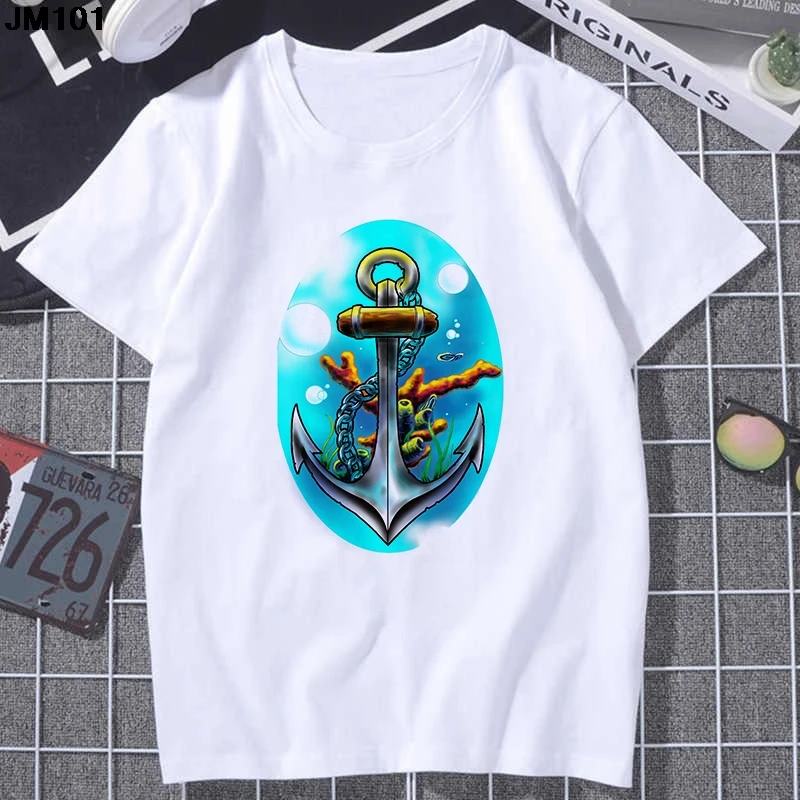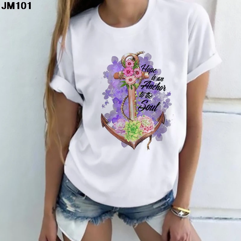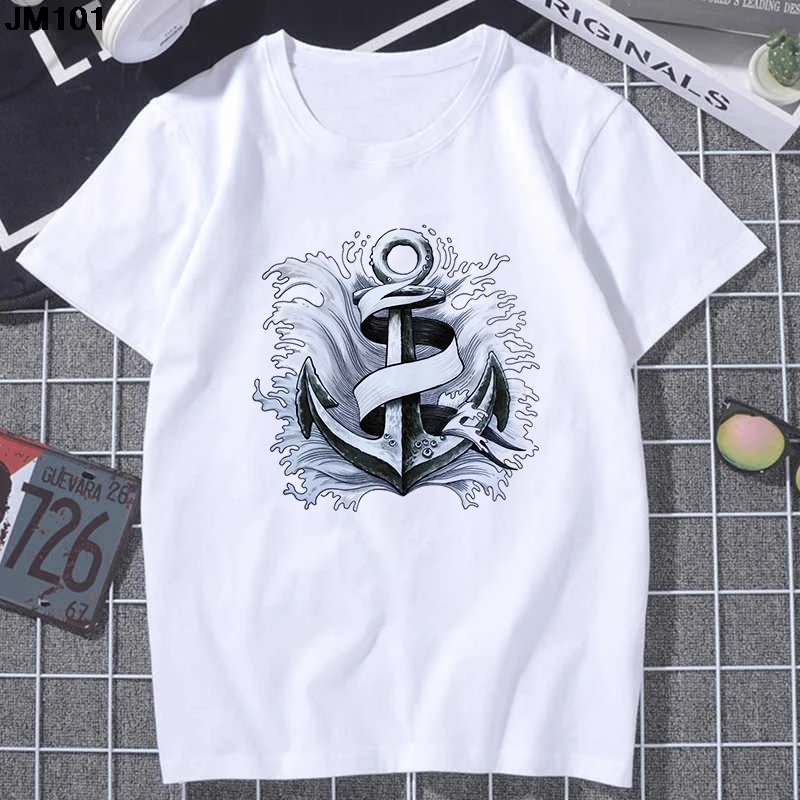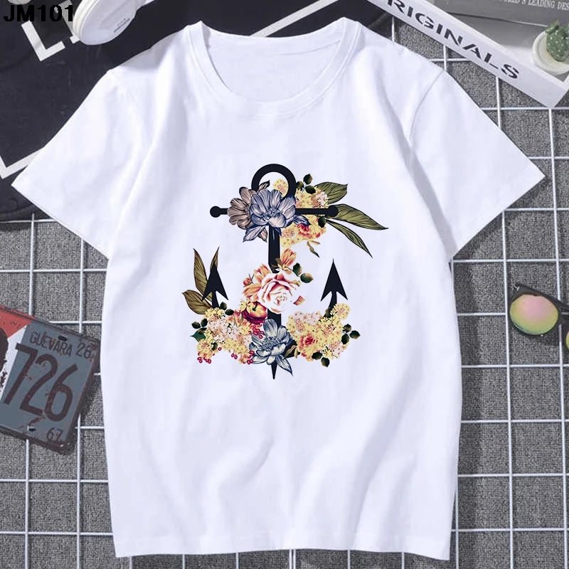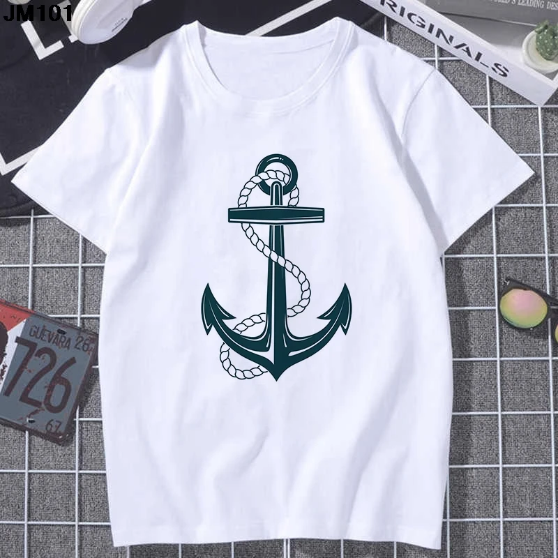 Футболка женская с принтом якоря, модная тенниска с коротким рукавом, уличная одежда в стиле Харадзюку, лето 90-х
