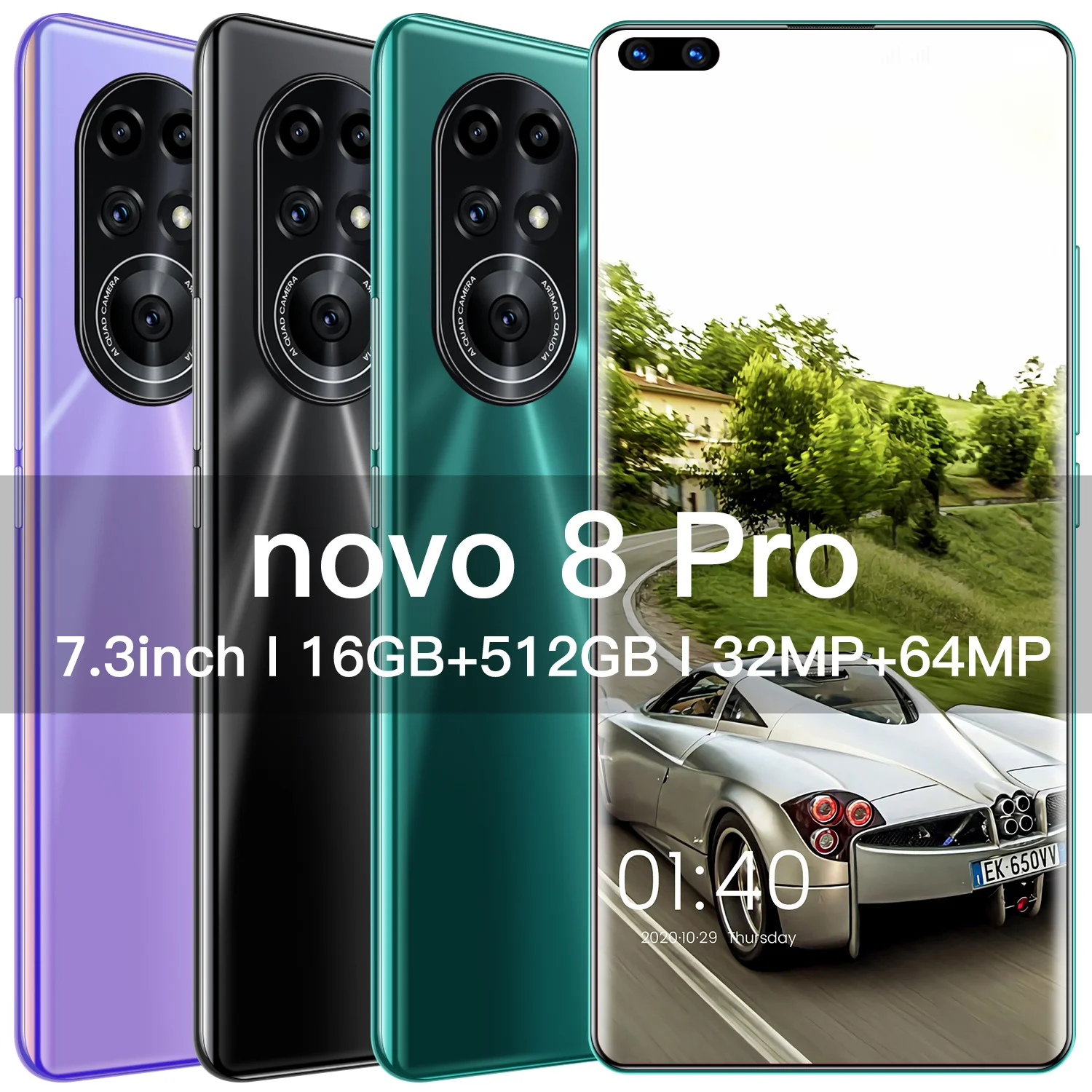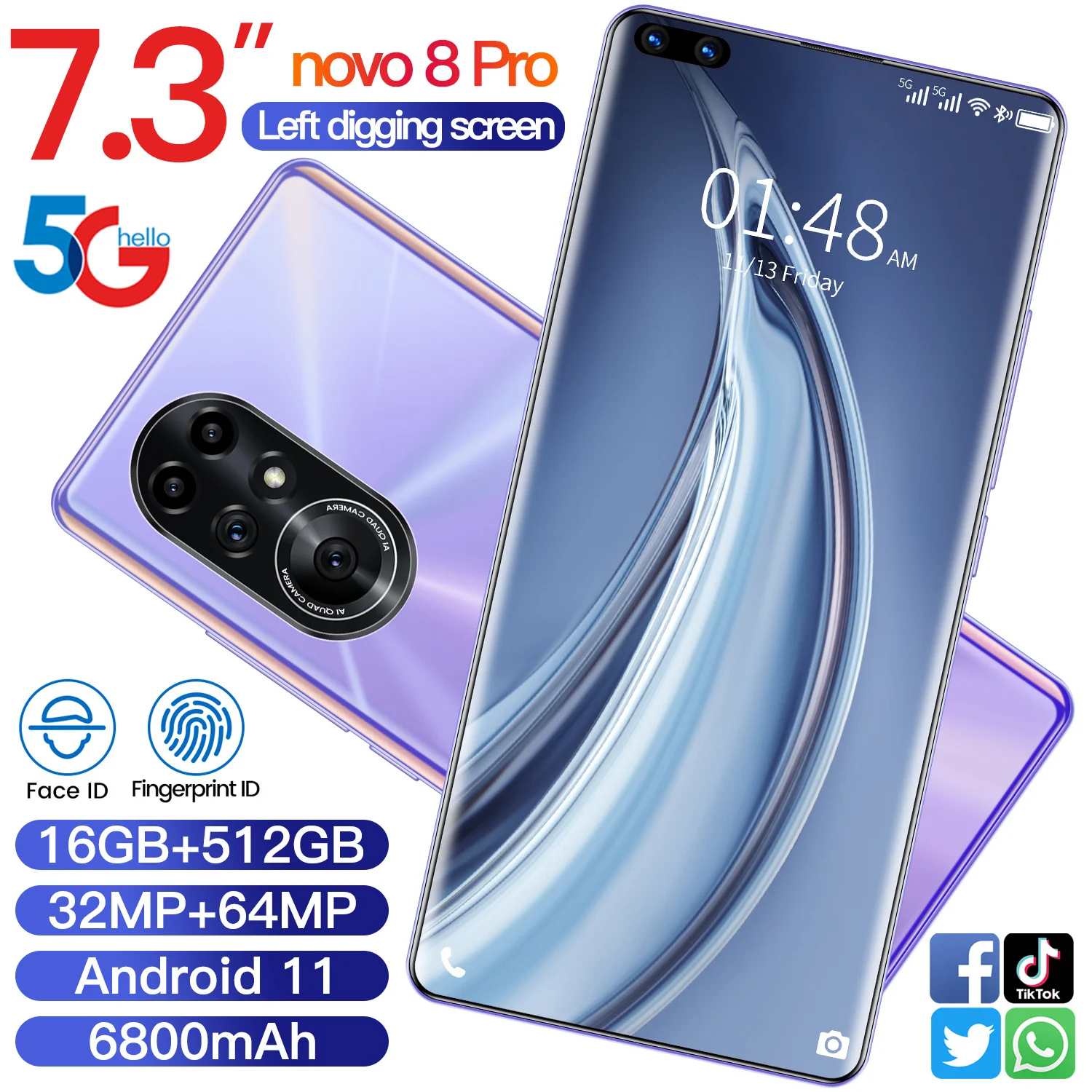 Смартфон Novo 8 Pro, экран 7,3 дюйма, Android, 8 ГБ + 256 Гб ПЗУ, высокий аккумулятор 6800 мАч, десятиядерный процессор, мобильный телефон тыловой камерой 32 МП