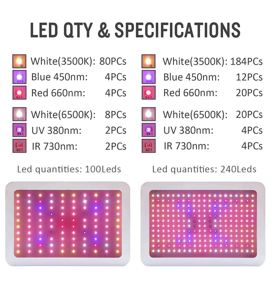 Light of style 1Red+Blue+IR+UV+Full spectrum Led+Warm led+White