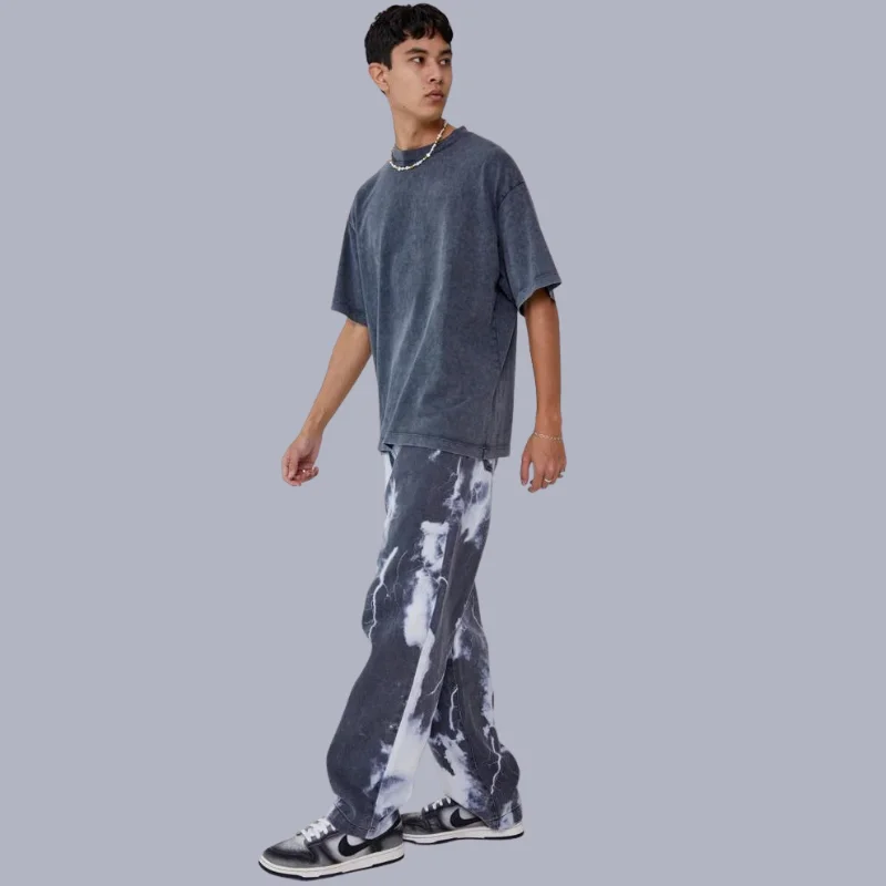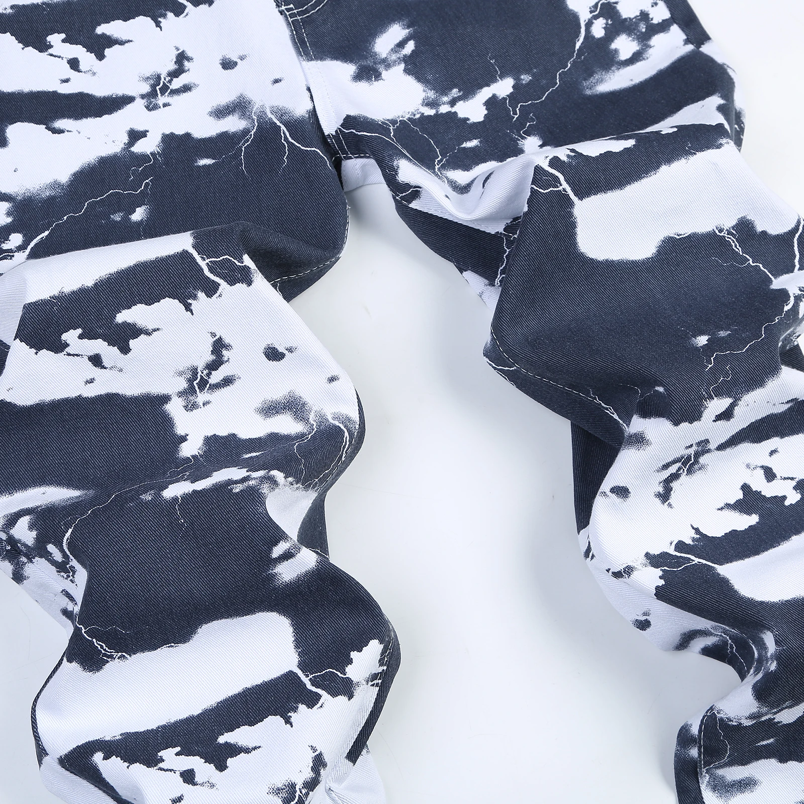 Джинсы мужские прямые с рисунком облаков и молний, брюки из денима ...