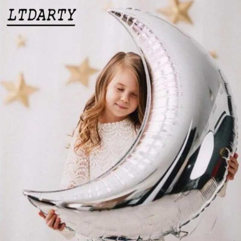 Воздушные шары золотые и серебряные в виде луны и звезд, 7 шт., 36 дюймов, в подарок, классическая игрушка для детей, украшение для дня рождения, 215