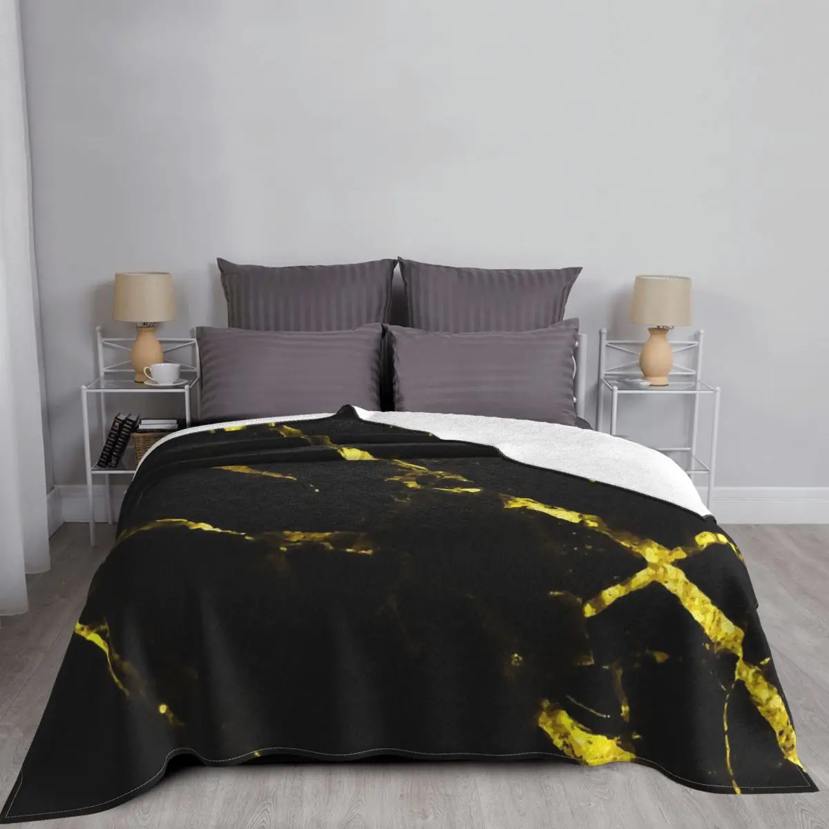 Черное одеяло из искусственного мрамора с золотыми акцентами, Флисовое одеяло, скатерти, клетчатые одеяла, клетчатый меховой спальный мешок для детей
