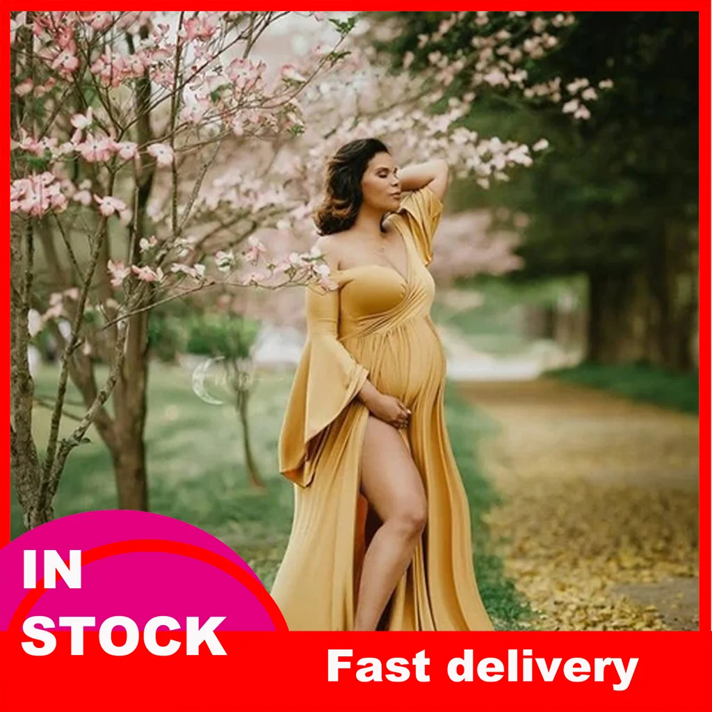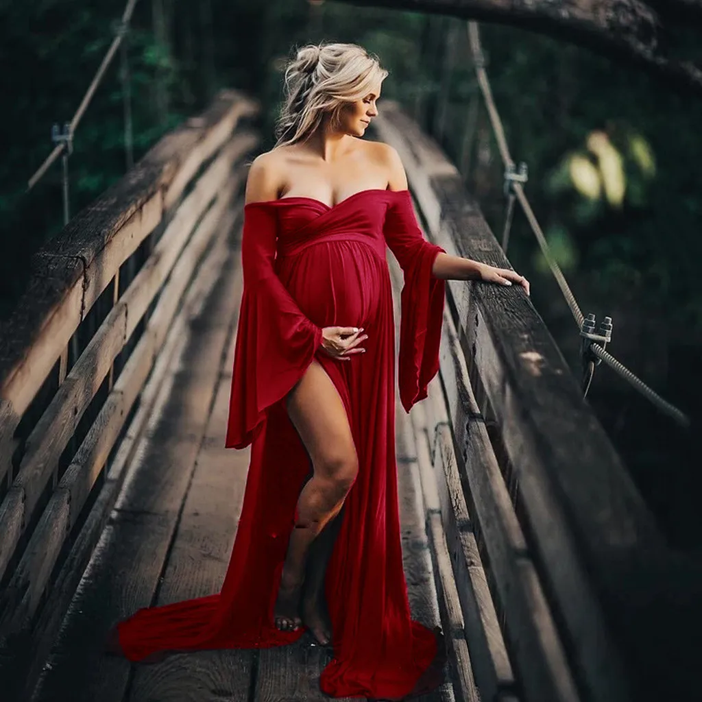 Женское платье для фотосессии с открытыми плечами и длинным рукавом для беременных