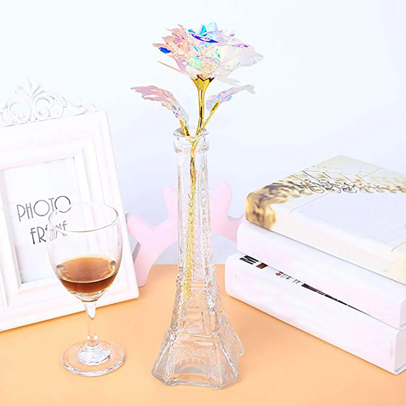 Яркие светящиеся светодиодные розы 1 светодиодный 6 шт., искусственные цветы, подарок на день матери, День Святого Валентина, День рождения, кристально чистый золотой лист, Роза