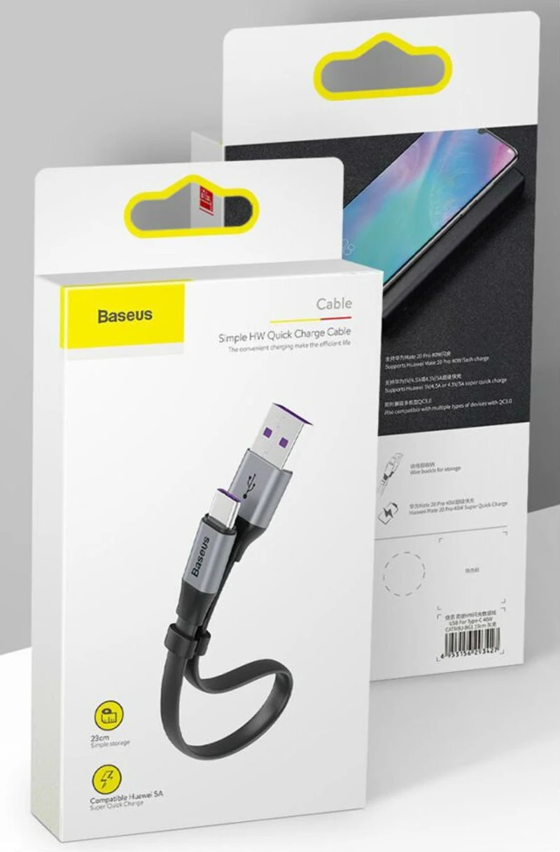 Кабель Baseus USB - USB Type-C Simple HW Quick Charge 40W (CATMBJ-BG1) 23 cм, Черно-серый