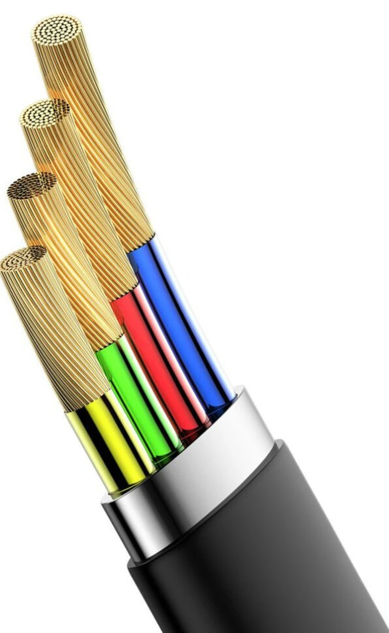 Провод выполнен из высококачественных материалов: алюминиевые коннекторы и оплетка из TPE-материалы делают его устойчивым к растягиванию и заломам. Места соединения кабеля и коннекторов закрыты усиленным TPE, а внутренняя часть коннекторов – алюминиевым сплавом, устойчивым к окислению и коррозии.