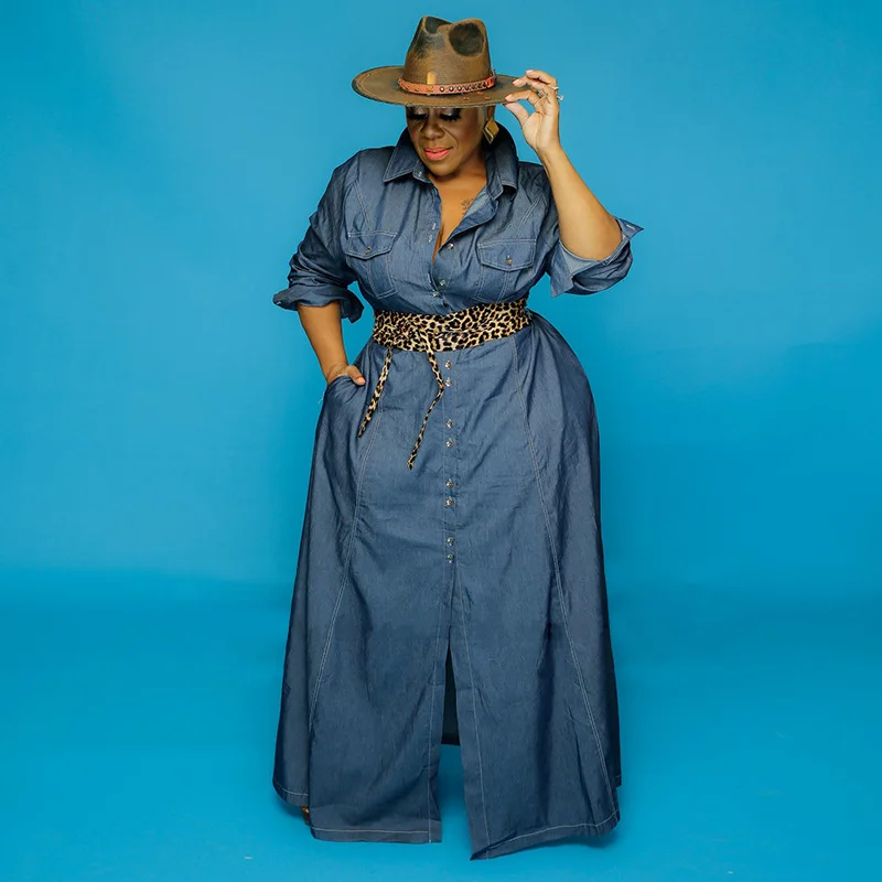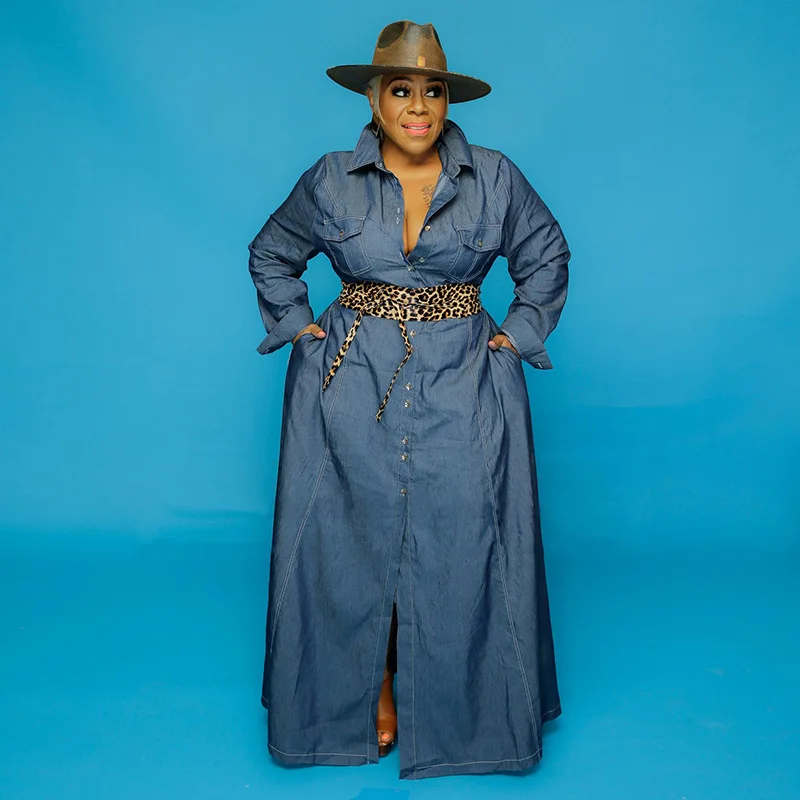 Женское джинсовое платье-макси с длинным рукавом, размеры до 5XL