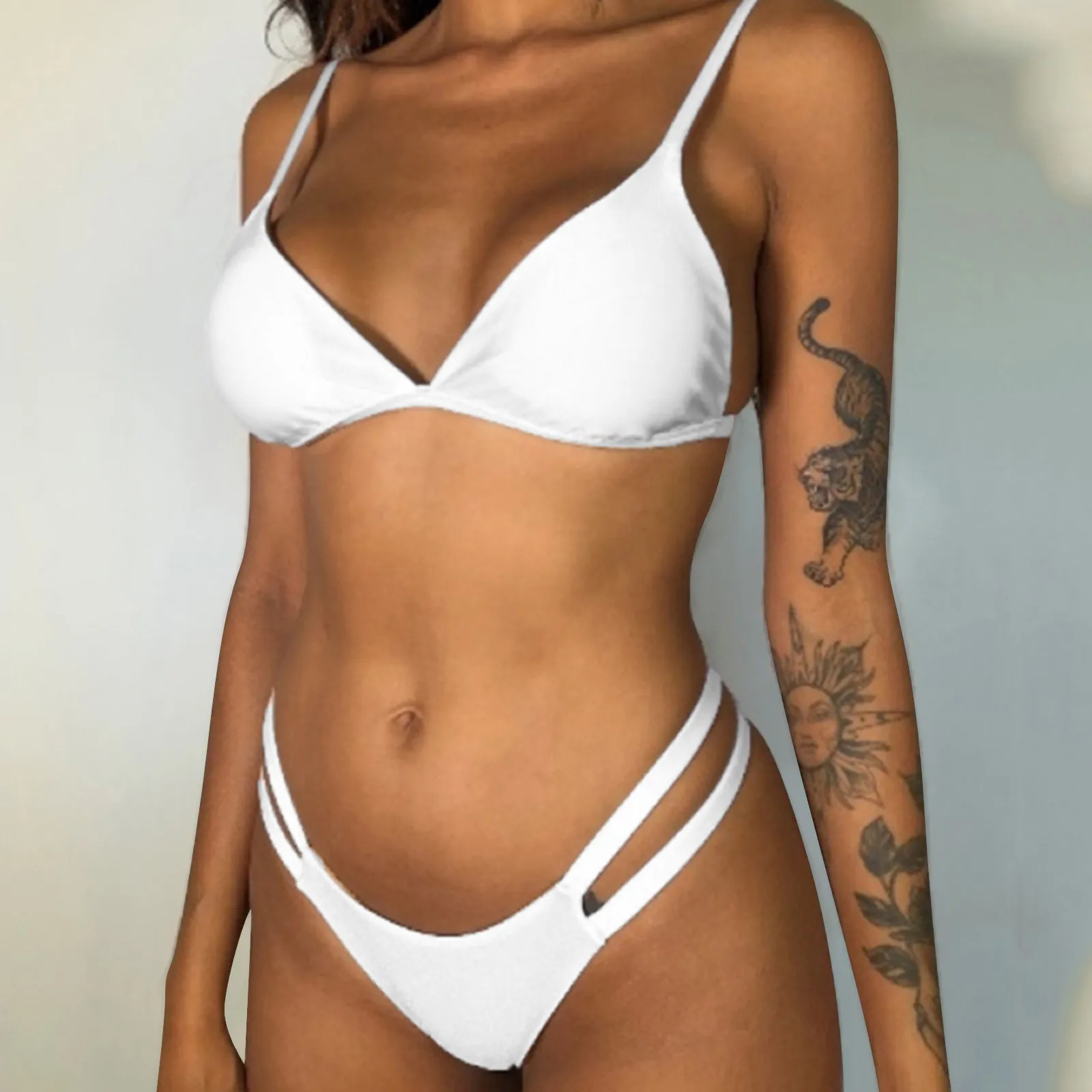Сексуальный бразильский комплект бикини, женский летний однотонный купальник пуш-ап с разрезом, пляжный комплект бикини из двух предметов с мягкой подкладкой