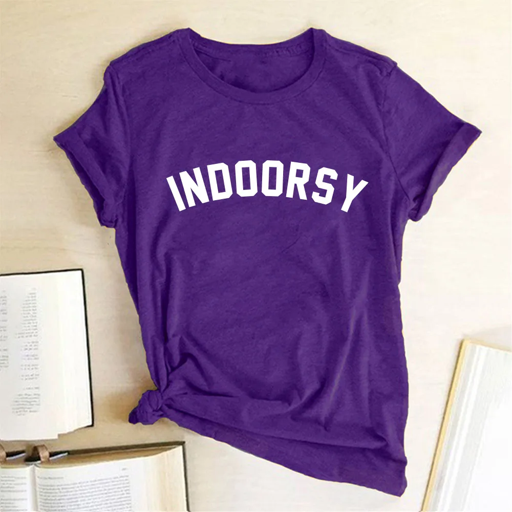 Harajuku INDOORSY/женская футболка с принтом; Повседневный Топ; Femme; Футболка с коротким рукавом и круглым вырезом; Свободная семейная футболка для женщин; Летняя одежда