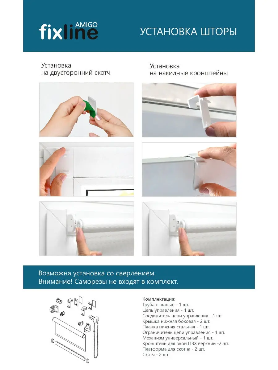 Отличные рулонные шторы начального ценового диапазона. быстро устанавливаются, весь крепеж в комплекте. доставка 4 дня курьером Брал здесь только потому что в Леруа Мерлен не было нужного размера =) при установке на окна помните что механизм штор будет ограничивать полное открытие окна. если это для Вас критично - используйте крепление на раму или на откос и соответственно заказывайте нужный размер.