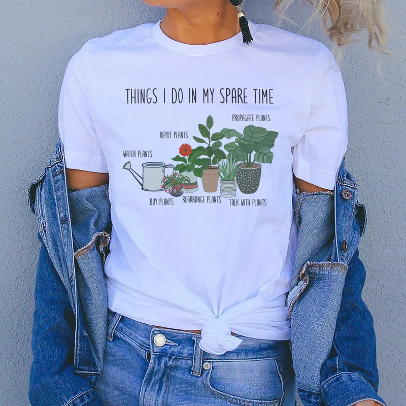 Женская футболка с принтом садовых растений, летняя, модная, повседневная, с ботаническим рисунком, забавная футболка, милые женские топы, футболки