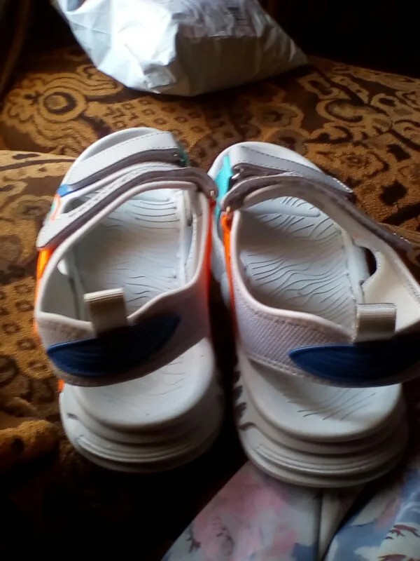 красивые и яркие босоножки, мягкие. минус в том что не регулируется первая липучка